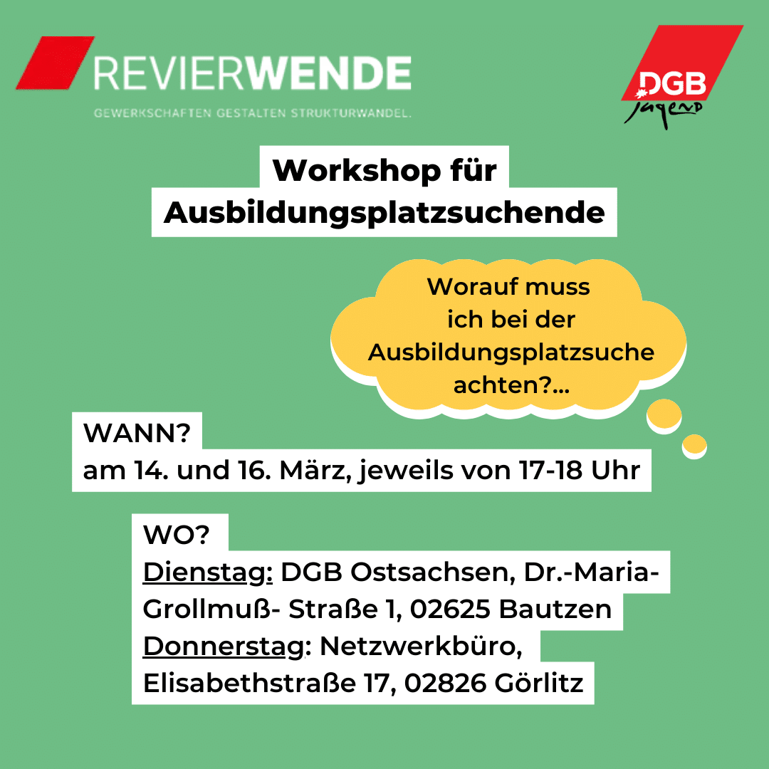14. & 16.03.23 – Workshop für Ausbildungsplatzsuchende in Bautzen und Görlitz