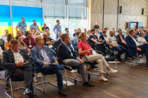 Um die gewerkschaftlichen Bedenken zu adressieren, hatte das Projektbüro die nordrhein-westfälische Ministerin für Wirtschaft, Industrie, Klimaschutz und Energie, Mona Neubaur, eingeladen. Aus Termingründen konnte sie allerdings nur für eine Videobotschaft zugeschaltet werden. Dafür standen hochrangige Gewerkschaftsvertreter für die Diskussion zur Verfügung, die unter dem Eindruck der aktuellen Energiekrise stattfand. Darunter Stefan Körzell vom Bundesvorstand des DGB aber auch der Bezirksleiter der IG Metall NRW, Knut Giesler, sowie Anja Weber, die Vorsitzende des DGB Bezirks NRW. Die Gewerkschaften sprachen sich für einen beschleunigten Ausbau der Erneuerbaren Energien aus, appellierten aber auch daran, Lösungen für die aktuelle Energiekrise zu finden. „Das Rheinische Revier wird nur eine industrielle Zukunft haben, wenn die Energieversorgung weiterhin gewährleistet und bezahlbar bleibt. Stark steigende Energiepreise infolge des Ukrainekrieges gefährden auch die Transformation im Rheinischen Revier“, sagte Weber im Gespräch am Rande der Konferenz. „Hier müssen Land und Bund an Lösungen arbeiten und Stabilisierungsprogramme für Unternehmen auflegen.“