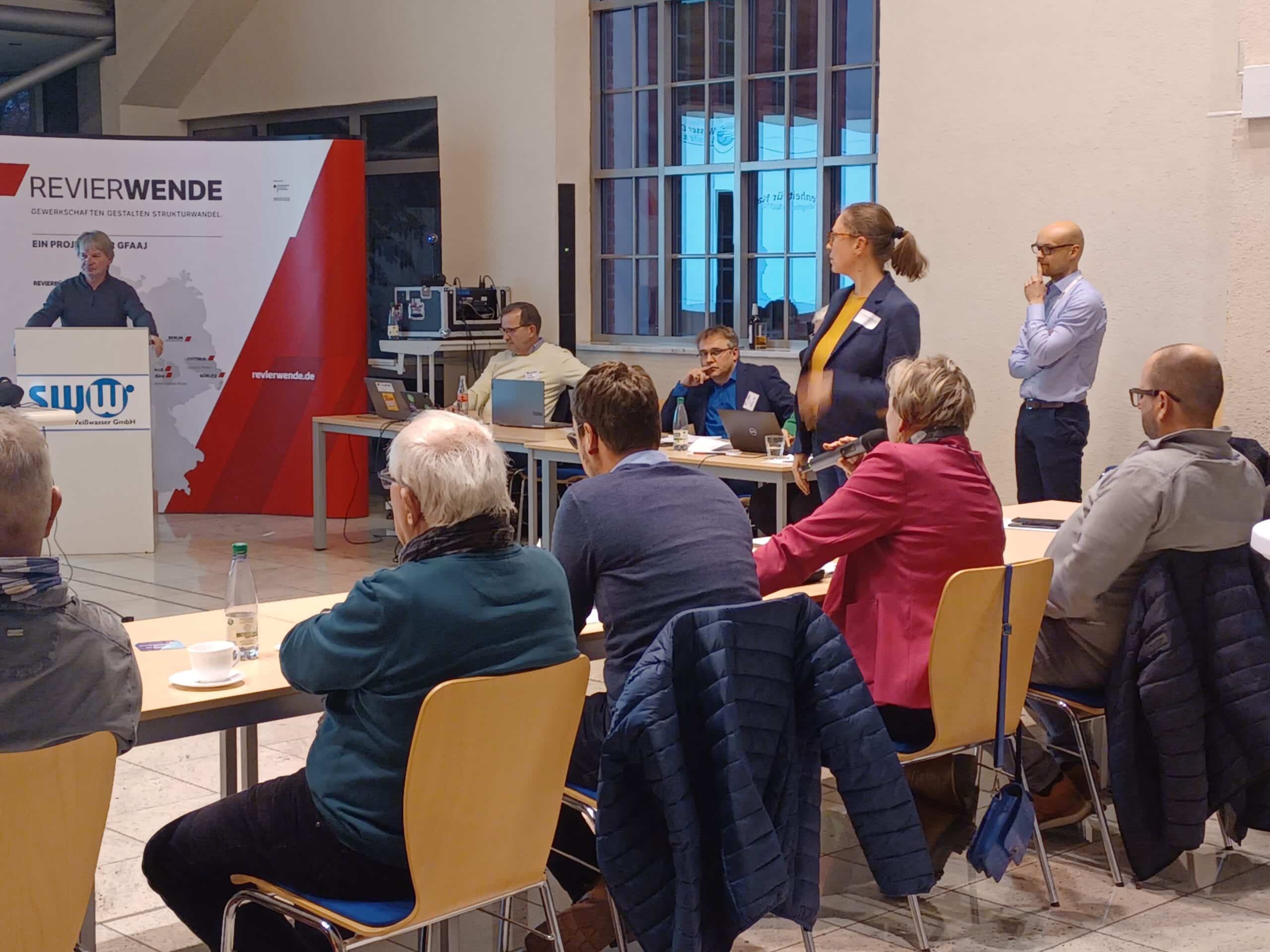 Gemeinsam mit 40 Teilnehmenden – Betriebsräten und Vertretern Lausitzer Unternehmen, Gewerkschafterinnen und Gewerkschaftern, politisch Verantwortlichen sowie interessierten Lausitzerinnen und Lausitzern – wurden die Fragen nach den Folgen und des Ausmaßes für die Wasserversorgung der Lausitzer Bevölkerung und Wirtschaft diskutiert. Die Notwendigkeit der Ressource Wasser auch für innovative Geschäftsmodelle – z.B.  der Produktion von Wasserstoff – war eines der drängendsten Diskussionsthemen. Gerade mit Blick auf die Ansiedlung neuer Wirtschaftszweige und den damit verbundenen Arbeitsplätzen wurden mögliche Lösungen aufgezeigt und diskutiert. Eine wichtige Erkenntnis an diesem Abend hierbei ist, dass nicht einzelne Maßnahmen ausreichen, sondern eine Kombination von verschiedenen Lösungen, auch über föderale und sogar europäische Grenzen hinweg, für eine gesicherte Wasserversorgung in der Lausitz erforderlich sein wird.