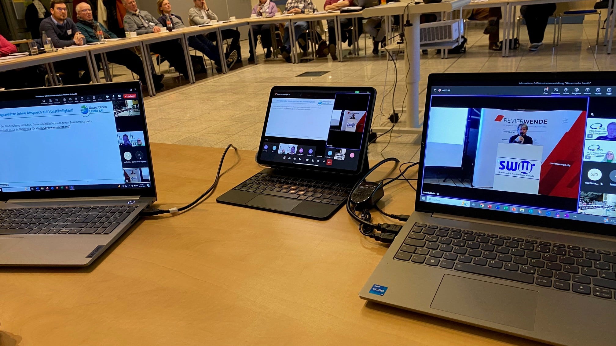 Bei der Informations- und Diskussionsveranstaltung am 07. Februar 2023 bestimmte das Thema „Wasser in der Lausitz – Wasser im Strukturwandel“ den Abend. Die REVIERWENDE Lausitz hatte hierzu den Experten Dipl. Ing. Ingolf Arnold vom Wasser Cluster Lausitz e.V. zu einem Vortrag mit anschließender Diskussion ins E-Werk der Stadtwerke Weißwasser GmbH eingeladen. Die Teilnahme war auch digital möglich, was gut die Hälfte der Teilnehmer nutzte.